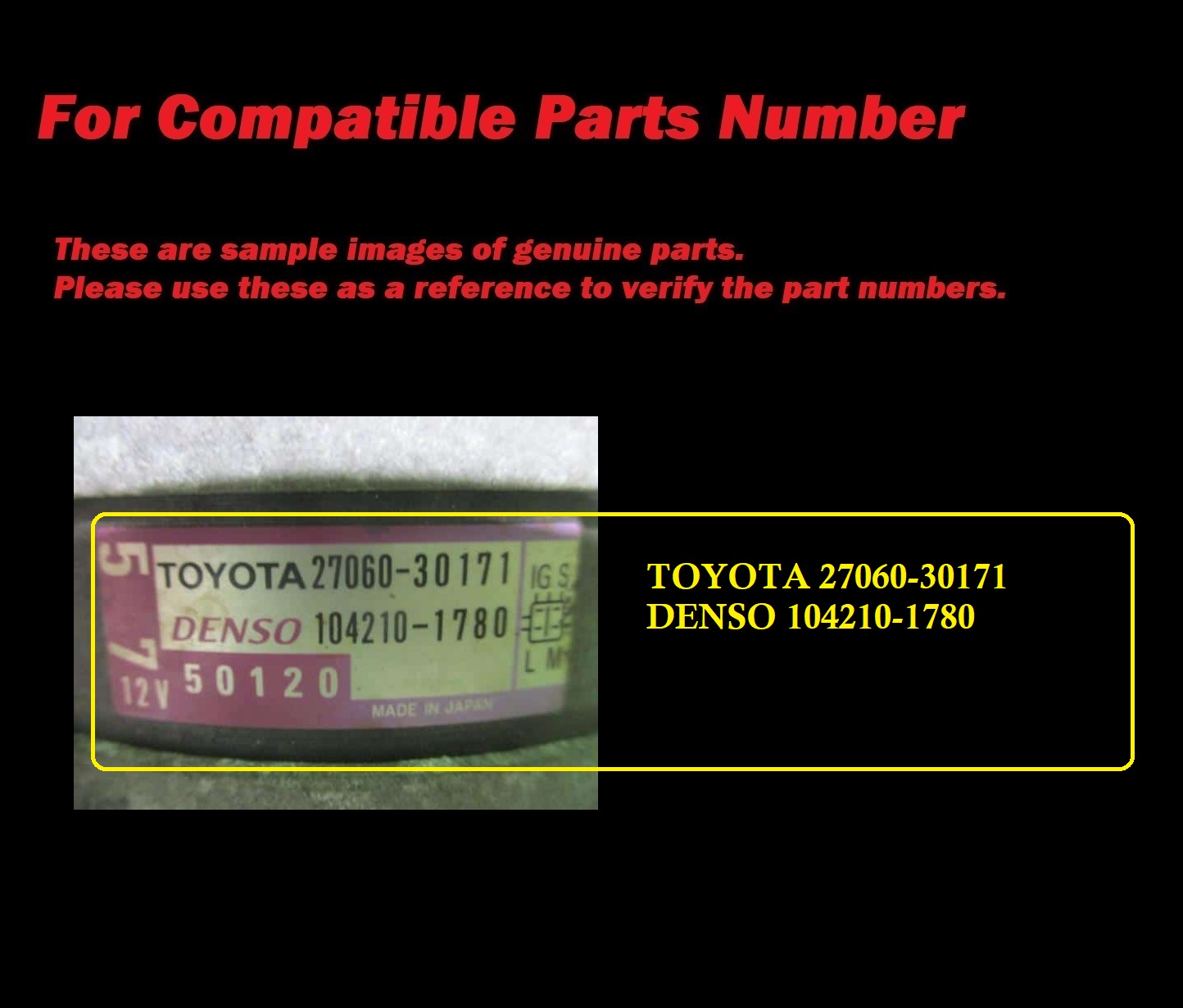 Compatible Parts Number : TOYOTA 27060-30171,DENSO 104210-1780