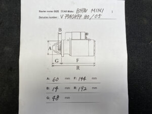 Starter Motor for BMW MINI R55 R56 R58 CITROEN PEUGEOT