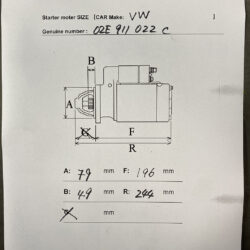 VW VOLKSWAGEN AUDI SKODA SEAT Genuine Starter Motor 2.0 TDi 02E911022C