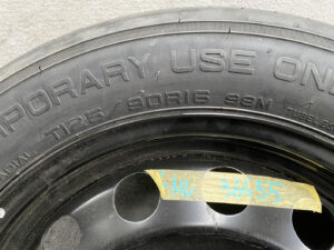 Note: Space saver wheels are additional tyres that are stored in the vehicle, which are smaller and thinner than your vehicle’s regular tyres. The smaller space saver wheels can be used on cars as temporary spare wheels in the event of a flat tyre. Space saver wheels do not necessarily have to have the same diameter as the alloy wheels fitted to the car. It’s partly due to weight (less weight means fewer CO2 emissions), partly limited boot space, and partly cost. Car manufacturers typically produce a limited number of sizes to accommodate all alloy wheel sizes fitted to various specification cars. The wheel offset may also be different from your alloy wheel offset; this is usually due to the narrow nature of the space saver and its ability to clear brake callipers. The spare tyre itself will carry a sticker with information about maximum speed (50mp/h-80mp/h)– which you must stick to for safety reasons. This means that, unlike a standard spare, skinny spares must be considered an emergency, get-you-home solution only. The original car tyre should be repaired/replaced as soon as possible.