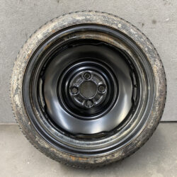Note: Space saver wheels are additional tyres that are stored in the vehicle, which are smaller and thinner than your vehicle’s regular tyres. The smaller space saver wheels can be used on cars as temporary spare wheels in the event of a flat tyre. Space saver wheels do not necessarily have to have the same diameter as the alloy wheels fitted to the car. It’s partly due to weight (less weight means fewer CO2 emissions), partly limited boot space, and partly cost. Car manufacturers typically produce a limited number of sizes to accommodate all alloy wheel sizes fitted to various specification cars. The wheel offset may also be different from your alloy wheel offset; this is usually due to the narrow nature of the space saver and its ability to clear brake callipers. The spare tyre itself will carry a sticker with information about maximum speed (50km/h-80km/h)– which you must stick to for safety reasons. This means that, unlike a standard spare, skinny spares must be considered an emergency, get-you-home solution only. The original car tyre should be repaired/replaced as soon as possible.